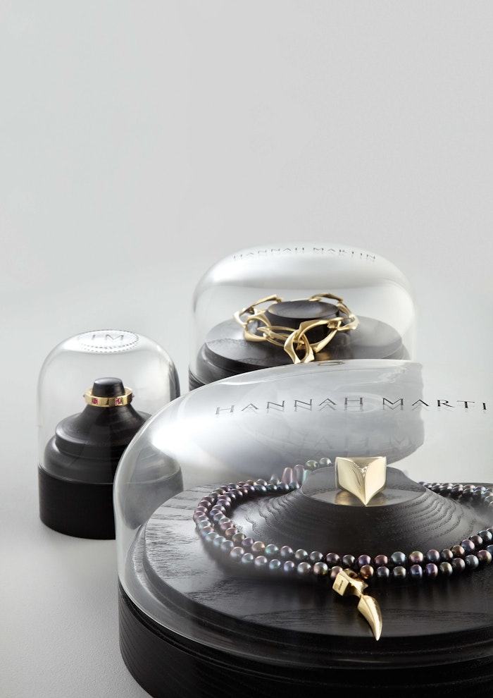 We created a showcase that would both protect and display Hannah's more lavish pieces. Our solution surpassed the brief to achieve a new level of brand recognition within the prestigious retail environments her pieces are sold, including Selfridges and Dover Street Market in London.