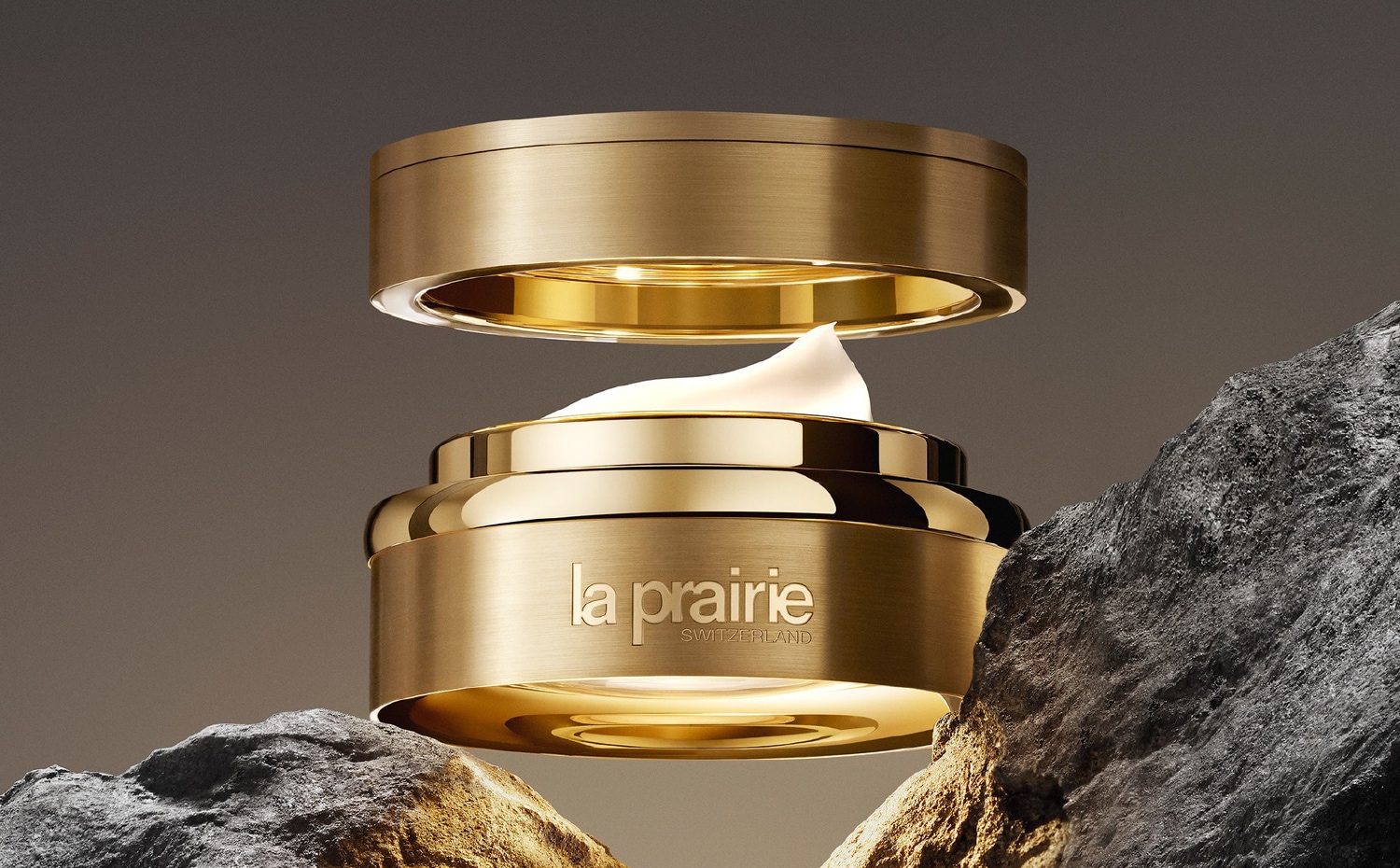 La Prairie’s iconic cobalt blue packaging is synonymous with the brand’s legendary treatments first developed by Dr. Paul Niehans in the 1930s.