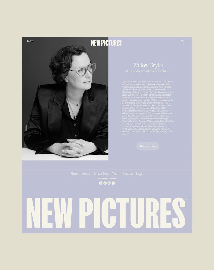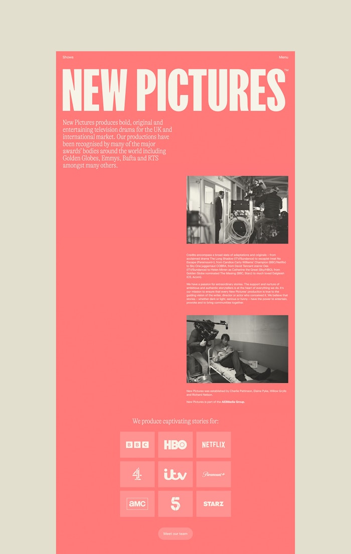 New Pictures have been producing original and entertaining primetime TV dramas that have captivated UK and international audiences for a decade. Two Create Studio were asked to better showcase New Pictures as the true champions of talent that they proudly are with a brand new identity and digital presence that would also enable them to reach their ambitious plans for growth in the States.